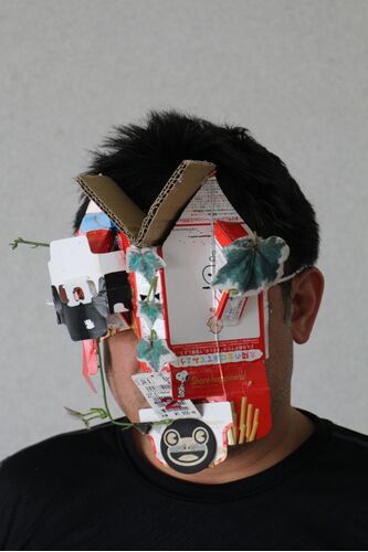 やたらと箱をとっている。大きいモノから小さいモノまで。そんな箱の1つでお面を作った。