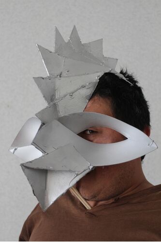 日常生活で出てくるゴミ(?)を素材としてお面を作る。日々の生活はいろんなアイデアの宝庫である。